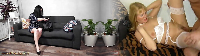 Pantyhosed milf can't control her rampant hormones