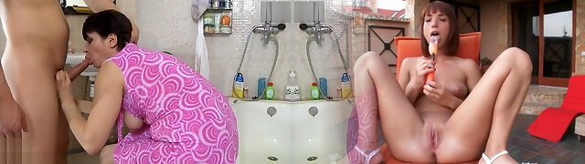 Fat mature slut gives a blow-job to her stepson, receiving deep anal penetration in interchange.
