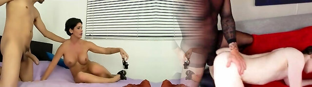 The wet pussy wife with big hooters treat the workers so good and have to pay for it by having hump with the big dick guy