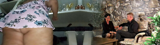 Busty Hot Wife catches their Scorching Tight Muff Ash-blonde Babysitter watching porn and invites her for a threesome with her hu
