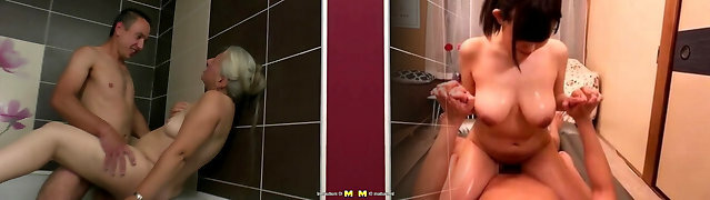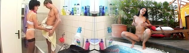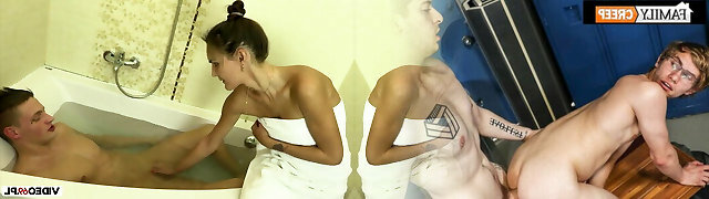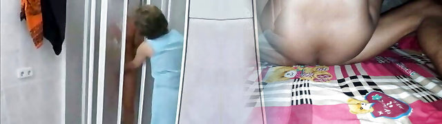 While the Desi step-mother washes bra & panties, stepmom took off the stepson's pants and Nude him, Then asks him to boink her - Cum