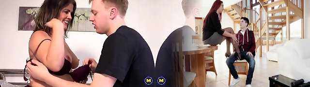 MYLF - Horny Cougar In Red Stocking Lets Stepson Watch Her As She Penetrates Her Pussy With Dildo