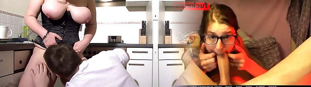 Stepmom lie on step son knees? Stepmommy getting risky oral internal ejaculation - Surprise cum in facehole