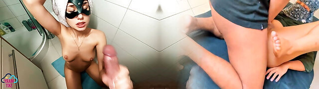 Why Step Mom bj's a dick before Share Couch with Step Son? Step mother gets creampie and play with cum - Kisscat
