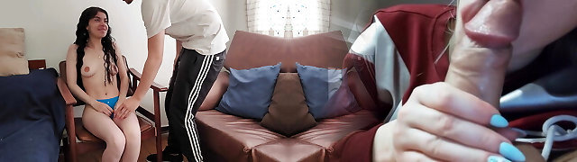 The son approached his stepmother and showed her his excited cock, she is shocked but she enjoys it and she wants to masturbate him
