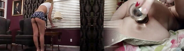 Curious blond goddess wife slut cuckold on husband in college uniform, pussy tonguing, facesitting, big ass and pussy fu