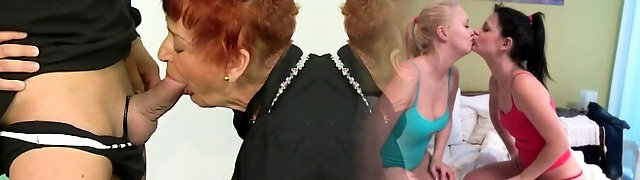 Granny with highly thirsty cunt gets fisting from girl