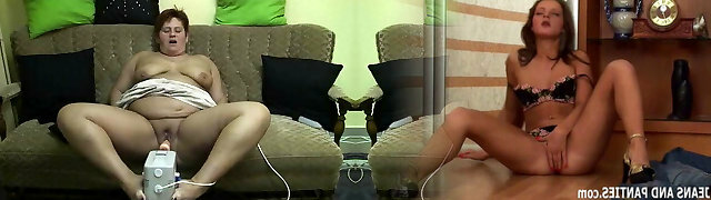 Grandmother loves machine pounding her pussy