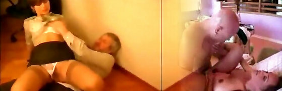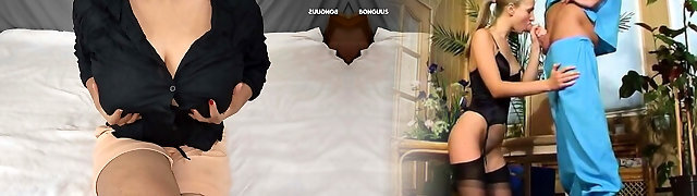 Going to work in a half-shirt, skirt ,stockings and heels. Ready for my younger boss to inspect my mature funbags, ass and bald cunt.