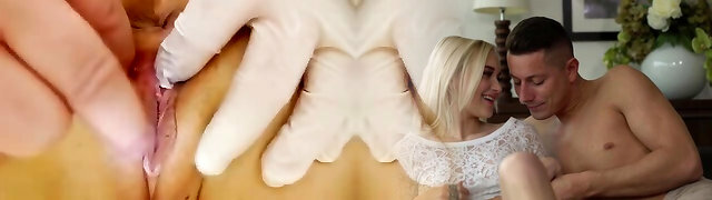 Fabulous light-haired girl can't take her eyes off of his fat wood