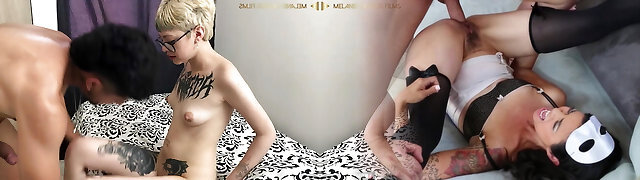 Bony-Milf cunt was expanded extremely during double fisting and fucked by cocks! With Cum Swallowing!
