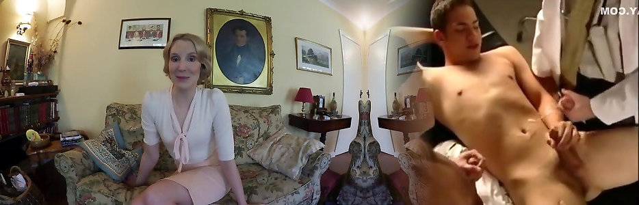 Mature lady Cherry Ripped tortures her male marionette with fuck machine