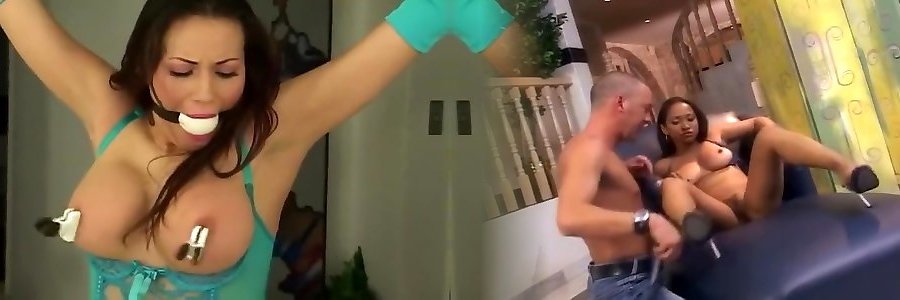 Mature lady Cherry Ripped tortures her male marionette with fuck machine