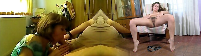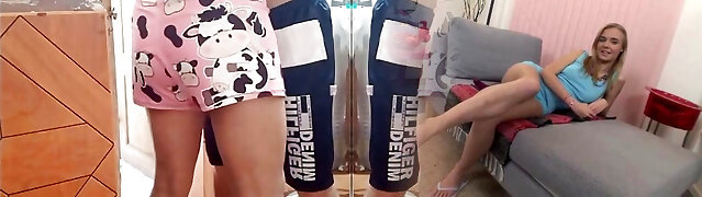 couple of stepsisters are alone in the living guest room and they get horny and start having lesbo sex