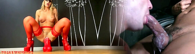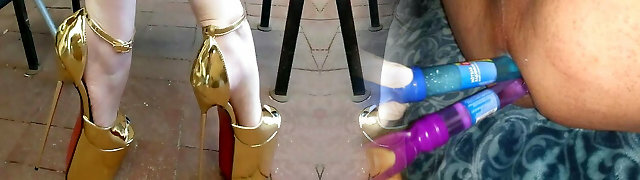 Heels And Fishnets On For The Neighbour To Film Me Screwing My Milf Pussy With My Big Fake Penises