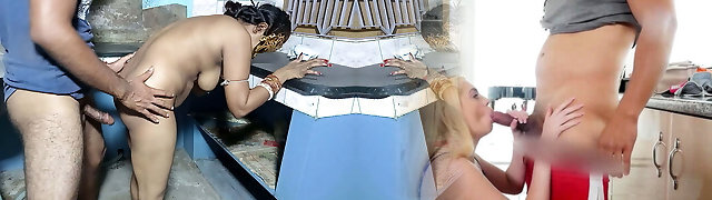 Threesome With Hot Big Bum Blonde SSBBW Maid Wife & Sex Doll (Guy Fucking 2 Pussy And Cumming) Bbw Creampie Big Load