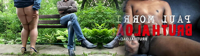 Milf with a big meaty tummy in pantyhose masturbates in nature