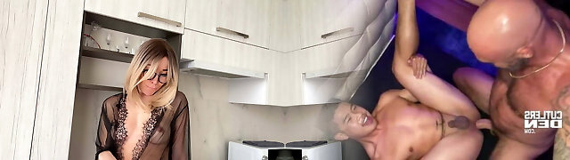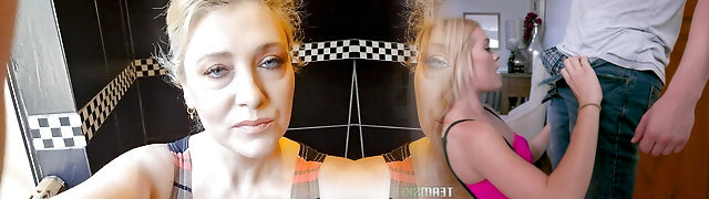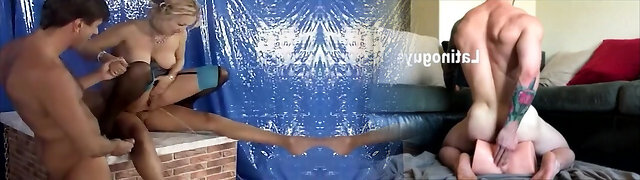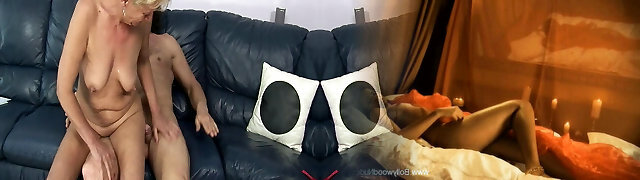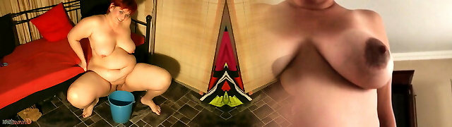Curvy mother-in-law stretches her legs wide while urinating in a bucket after sucky-sucky to her son-in-law