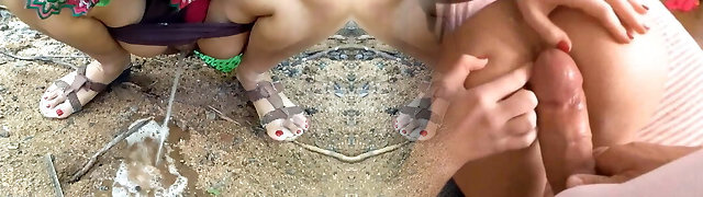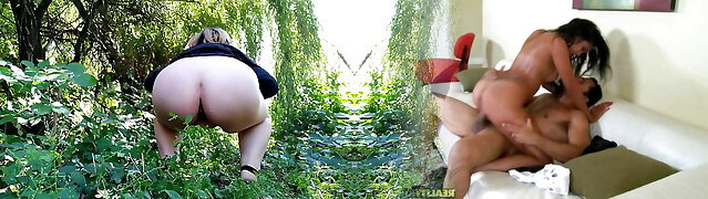 Pissing on a public road outdoors. Spycam observing mature milf with massive butt in white panties. Dirty fetish. ASMR. PAWG.