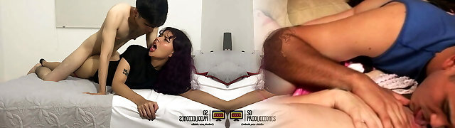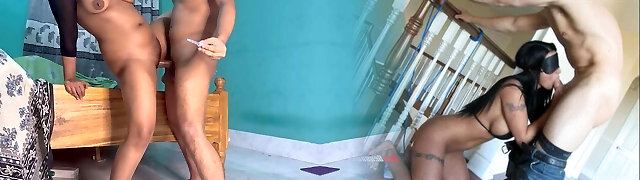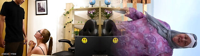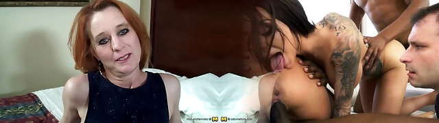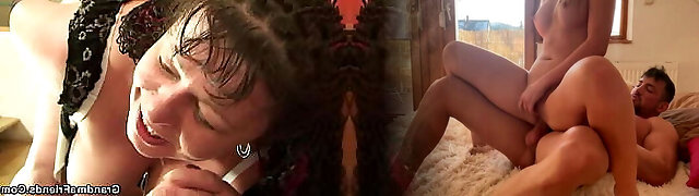 Step Mommy caught Step Sonnie jerking off and helps to jism quick on her pussy while her Husband is home