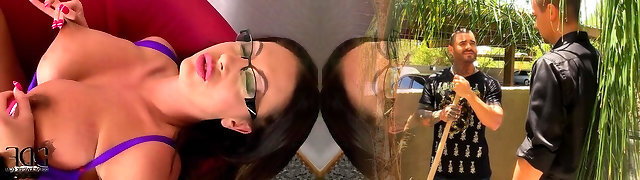 This brunette bitch Emma Butt got additional huge fake tits; she is squeezing them and fingering her smooth-shaven vag.