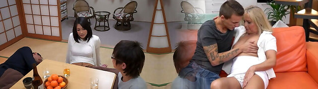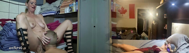 继子玩游戏机和乱搞他的热继母在喉咙!