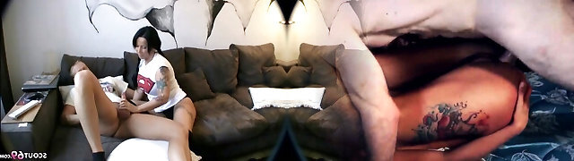 驼峰在一个大的战利品和绷紧莫夫在沙发上与一个成熟的女孩
