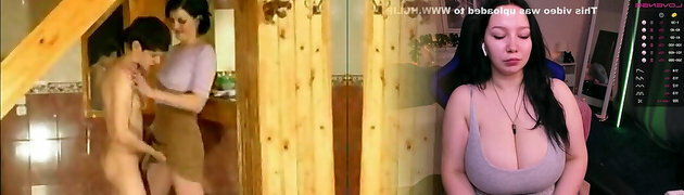 撞在厨房里,胸部丰满的继母在连裤袜得到暨在细高跟鞋