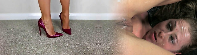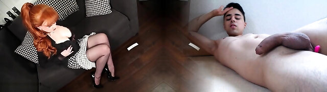 红色的硬核在淘气的美洲狮排水在她的令人兴奋的内衣