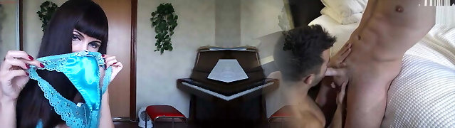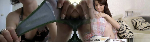 他年轻的继母闪烁他她的新Calvin Klein丁字裤