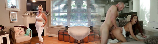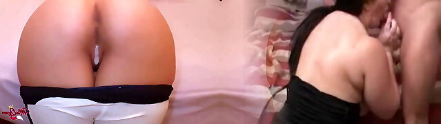 步骤妈妈在紧身裤挑逗,让她的继子触摸,摩擦和射液的屁股(在裤子)