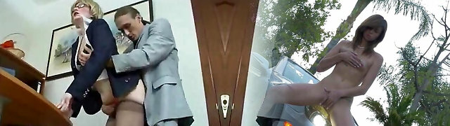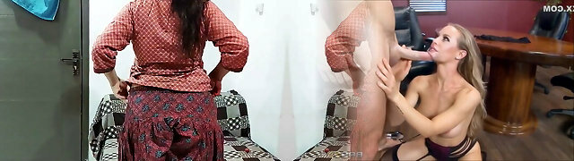 金发女郎尼娜哈特利呻吟,同时被她的老板渗透