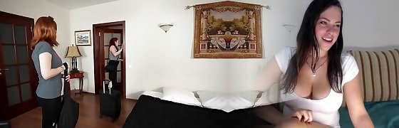 两个红头发的婊子在一张床上。 继母和女朋友。 酷他妈的两个红头发